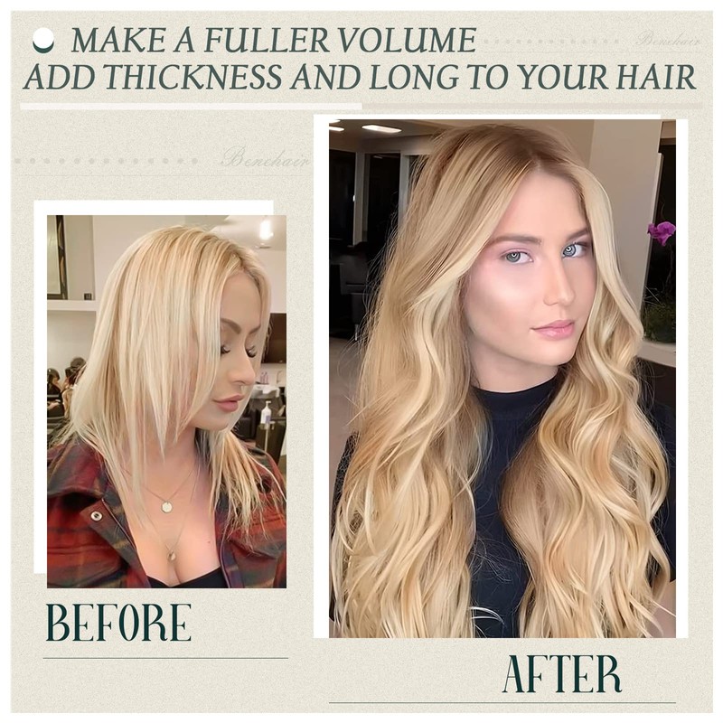 - 【Size and Color】The size of Benehair tape hair extensions real human hair is 20 Inches (25 g), the color is #12P613 Golden Brown Mix Bleach Blonde, usually 50-100g is needed for normal volume and 100-150g for a full head,depends on your hair thickness.