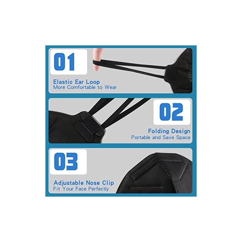 - ADJUSTABLE NOSE CLIP - 3D nose clip design with inner and outer layers N95 Mask. This is an adjustable nose bridge design n95 filter respirator with a double-layer nose bridge design. It's very comfortable and breathable, soft inner foam nosepiece made of black PU foam, hidden adjustable outer nose clip made of iron wire+plastic nose clip. Accord with Human face design.