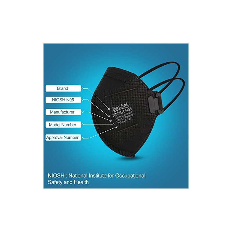 benehal NIOSH Approved N95 Mask Particulate Respirators, Pack of 10 N95 Face Masks, Individually Wrapped, Black