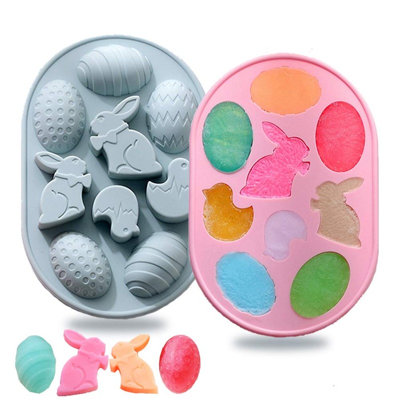 - 1.New Version: 9 Cavities of 5 Style Easter-themed shapes with clear details make your works vivid and lovely.It's great for grilling candy, soap, muffin, biscuit, chocolate, ice cube or other homemade crafts at a time.