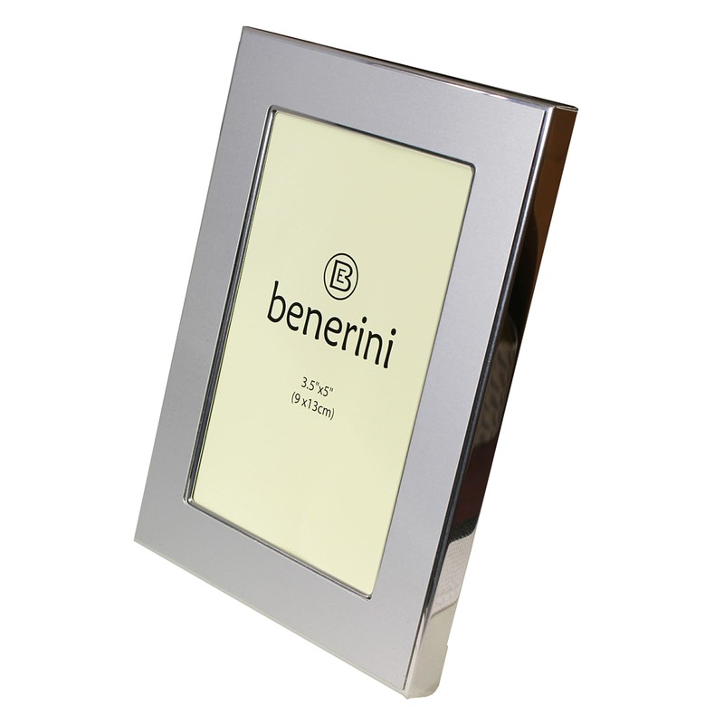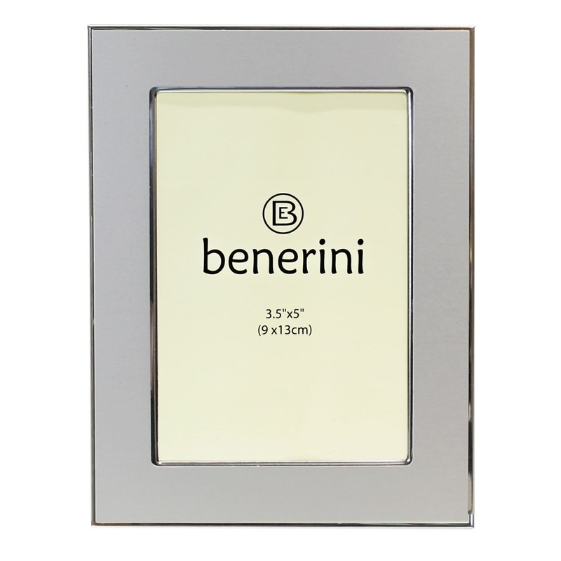 benerini Photo Size 3.5 x 5 Inches (9 x 13cm) - Brushed Satin Silver Colour & Shiny Aluminium Photo Picture Frame - Landscape or Portrait.