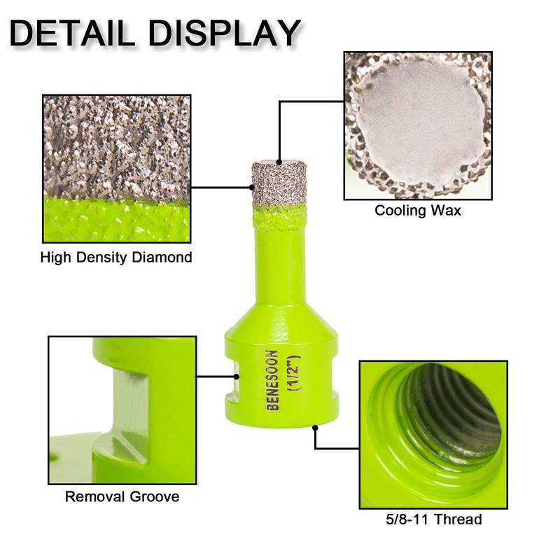 BENESOON Diamond Hole Saw for Glass Ceramic Tile Granite Marble Porcelain Brick Stone, Diamond Core Drill Bits, 5/8"-11 Shank, 1/2 in 2PCS