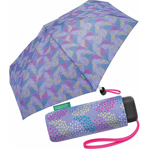 - Show colour with this beautiful, very small, flat, yet sturdy pocket umbrella with hand opener from Benetton. As always, the company's new spring-summer collection highlights the "United Colors" anchored in the brand name. The multi-coloured polka dot circle pattern brings a good mood in any cloudy rainy day.