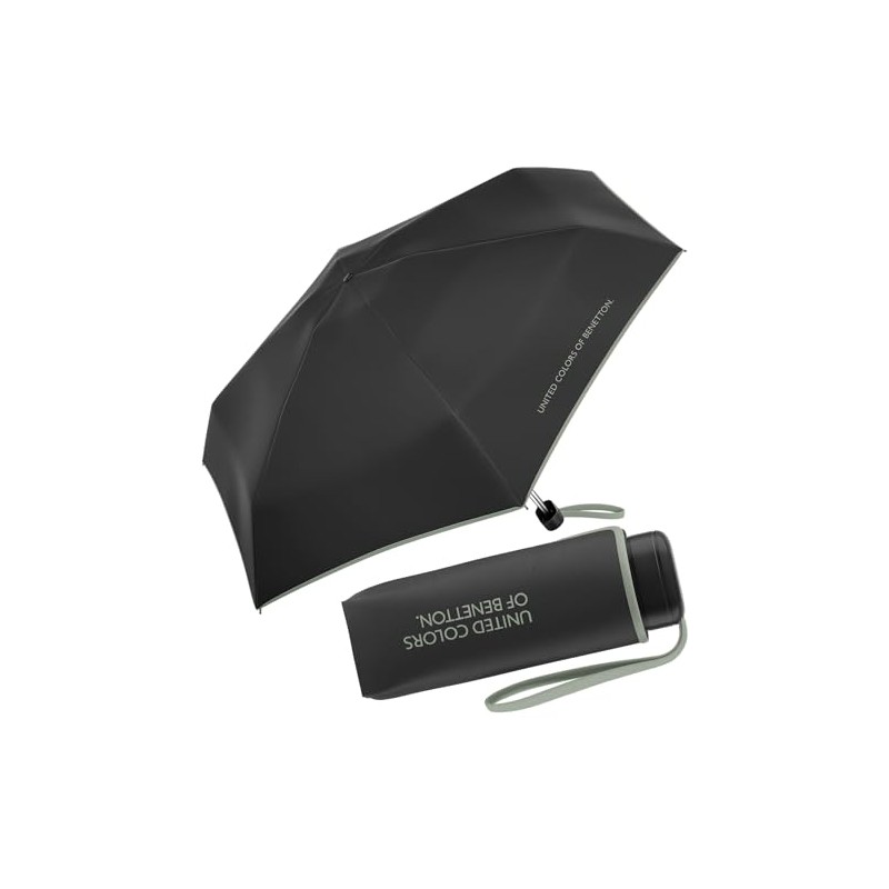 Benetton Pocket Umbrella Ultra Mini Flat Solid, Black-iceberg Green
