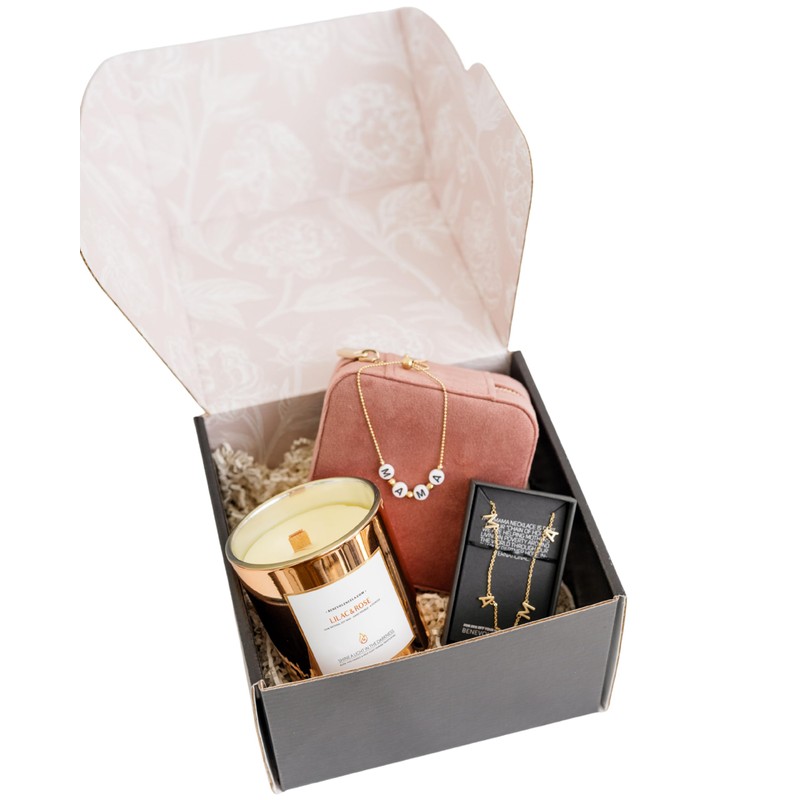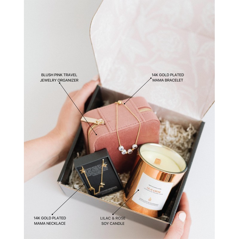 - THE PERFECT GIFT FOR EVERY MAMA: This thoughtful and beautiful gift box is packed with keepsakes and self-care goodies for every mama out there. Including a lovely Pink travel jewelry box, a charming MAMA necklace, a matching bracelet, and a soothing Lilac & Rose scented candle. It’s the perfect gift for any special mom, whether it’s for your wife, sister, or grandma. Perfect for baby shower, or as a surprise gift for mom too.