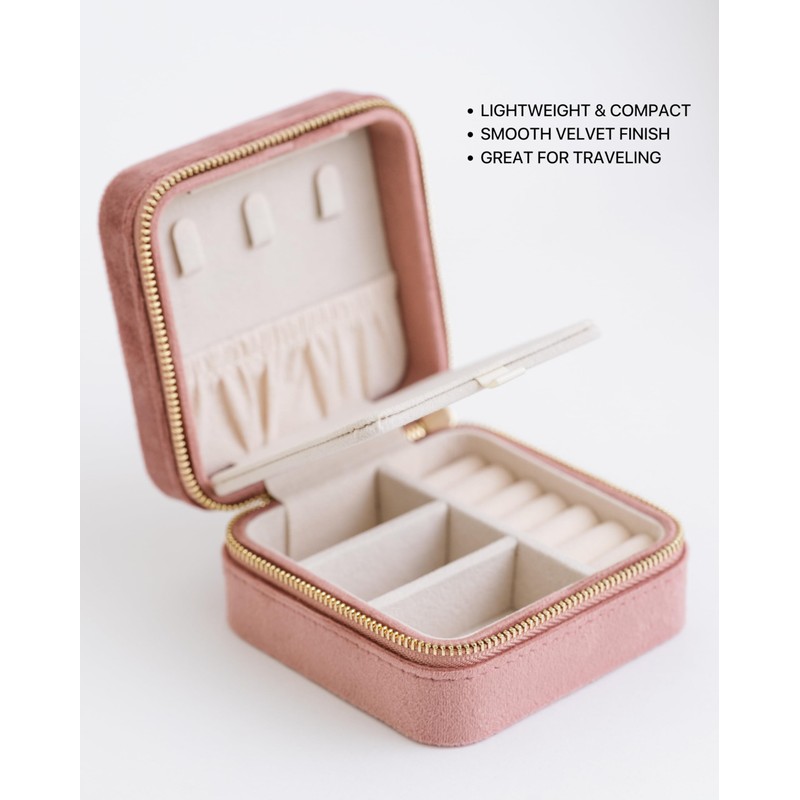 - KEEP JEWELRY ORGANIZED: In a plush velvet and sweet Dusty Pink, this compact travel jewelry organizer is a wonderful way to protect and organize multiple earrings, rings, necklaces, and bracelets while she’s on the move. It makes a practical addition to any Mother’s Day gift basket or a thoughtful Mother’s Day gift from your husband.