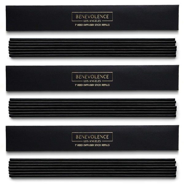 Benevolence LA Reed Diffuser Sticks - 3 Pack of 7 Natural Rattan Sticks per Pouch – Home Fragrance Refill, Eco-Friendly Reed Replacement for Essential Oil Diffusers