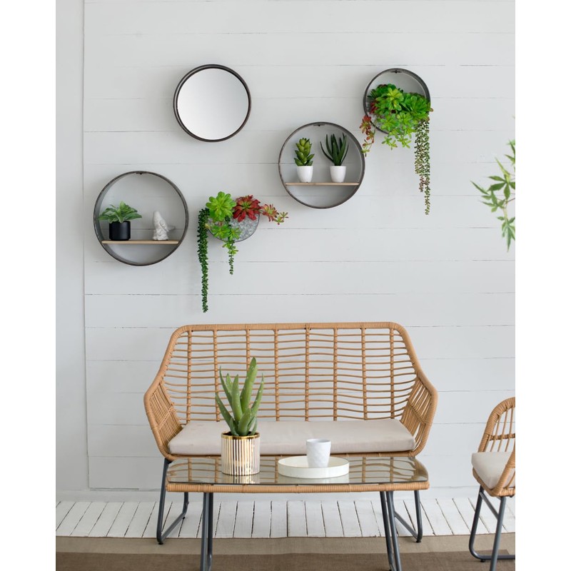 Benicabaly Create a Vertical Garden with Modular Round Metal Wall Planter Set, 5 Unique Pieces, Includes Shelves and Mirror, Gray