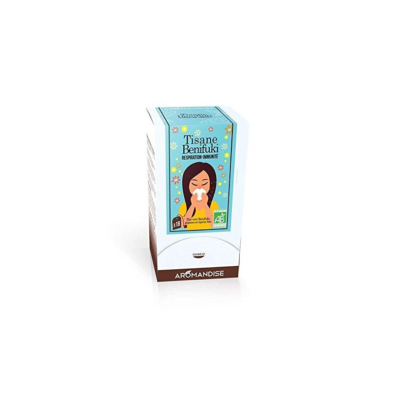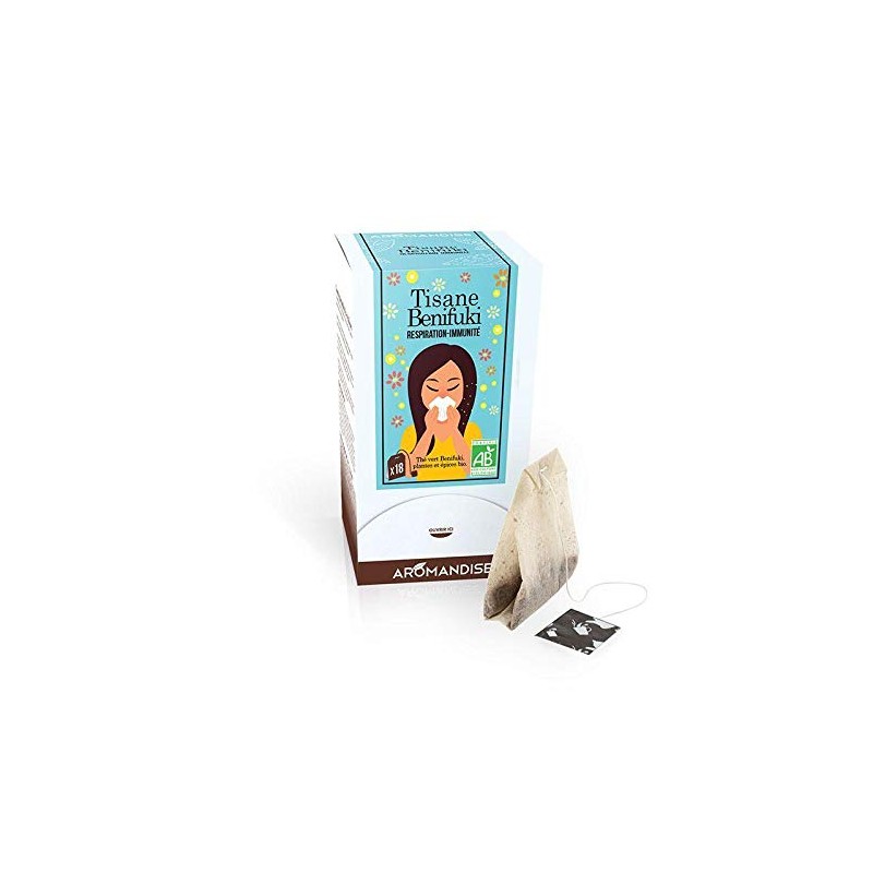 Discover the extraordinary herbal tea from Benifuki with breath and immunity! Benifuki herbal tea contains Benifuki green tea (Camellia Sinensis L. cv Benifuki), which contributes to well-being, relaxation and strengthening of the body and whose effectiveness is increased by the ginger with antioxidant properties, supports immunity, nettle, which contributes to the body's defence, and cinnamon that supports upper respiratory health. Herbal tea cannot replace a varied, balanced diet and a healthy lifestyle. For a program of 4 to 12 weeks, including 4 before the pollen season, at a rate of 2 bags per day for maximum benefit. Capacity: 18 bags. Benifuki * green tea (Camellia sinensis L. cv Benifuki) 40%, nettle * 40%, ginger * 12%, cinnamon * 5%, essential oils crystals peppermint * (tequilana agave powder *, essential oil of mint peppermint)