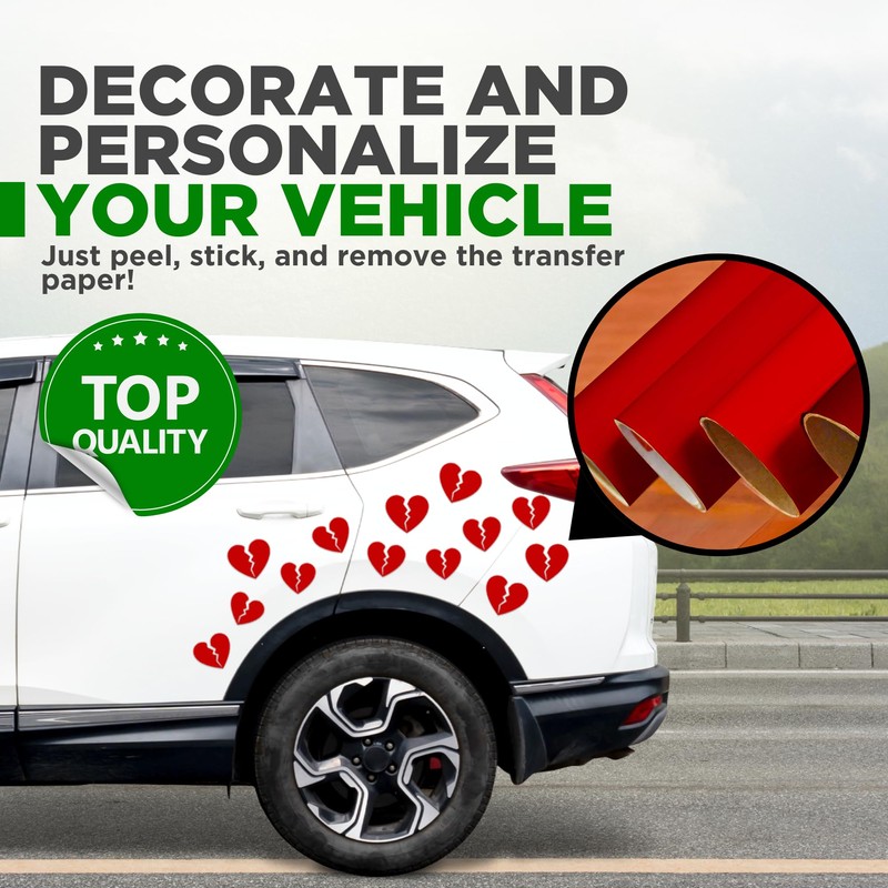 - ✅ Comes in a set of 8 RED Broken Heart decals per order.