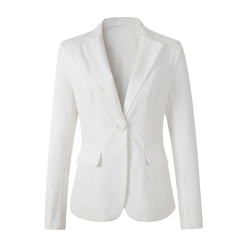 Beninos Womens One Button Blazer Lightweight Office Work Suit Jacket (D918 White, XL)