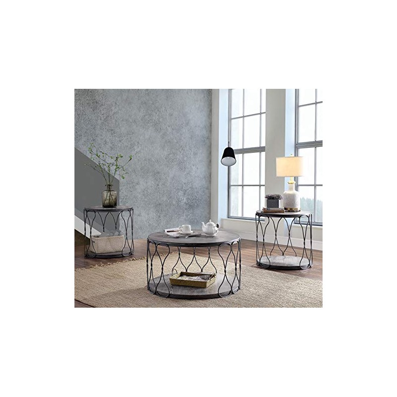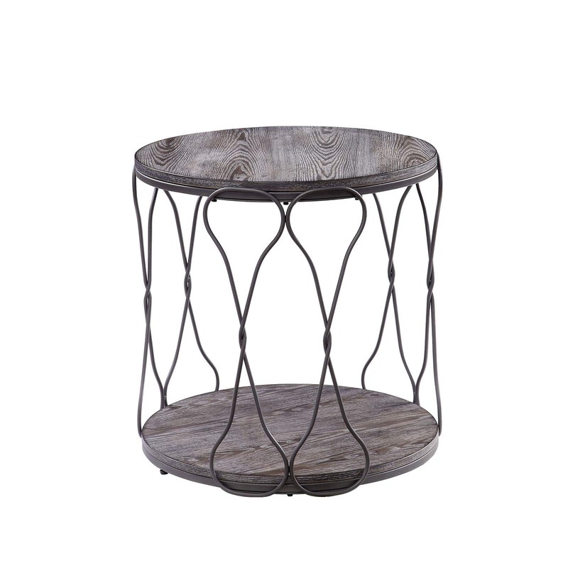 Benjara Benzara Round End Table with Open Bottom Shelf, Gray and Brown