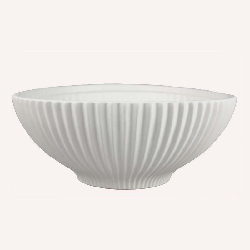 Benjara Zinia Decorative Bowl, Glossy White Ceramic Fluted Texture, 13 Inch