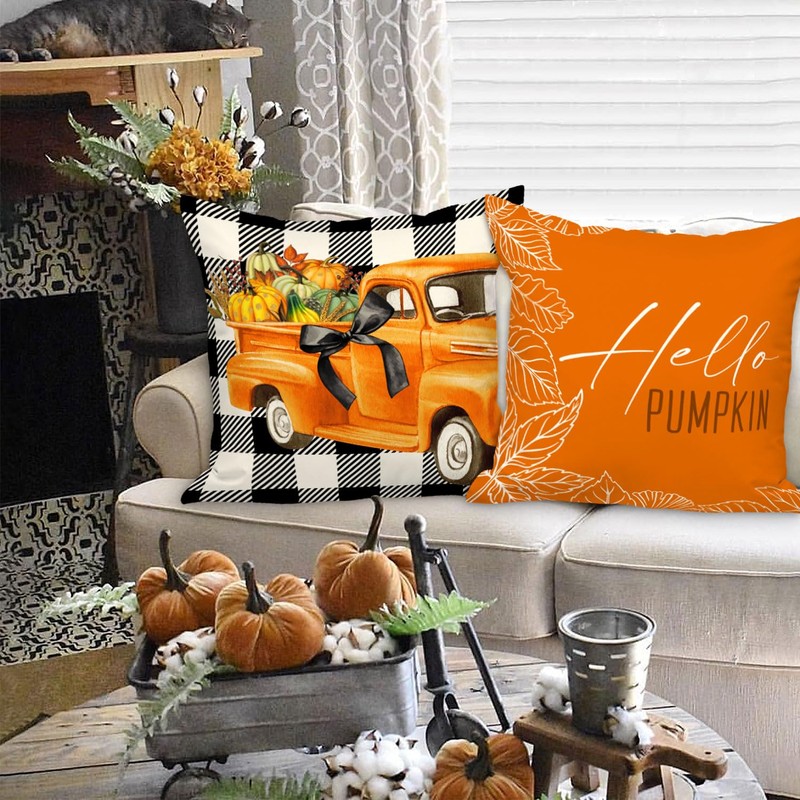 - Set of 4 40x40 cm / 16x16 inch Decorative Fall Pillowcases with clear prints pattern to help you quickly change up your fall decorations, perfect for fall harvest Thanksgiving Halloween decorations.