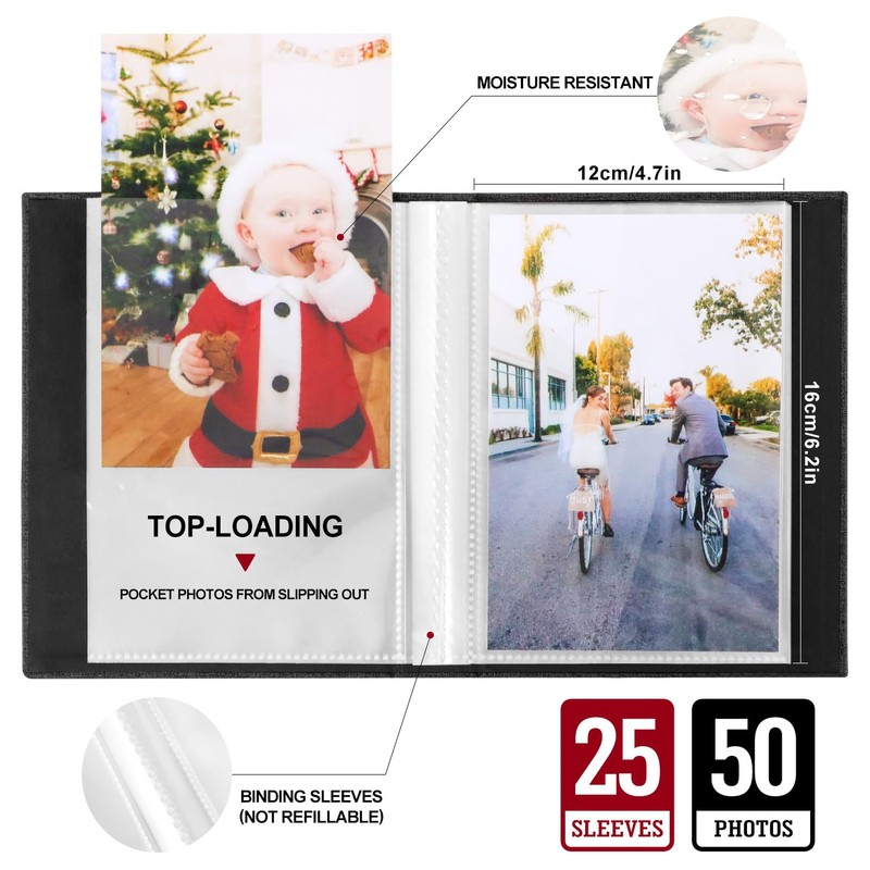 - Packing list: 2 Packs small photo albums.Each pack holds 50 6x4 top loading vertical pictures