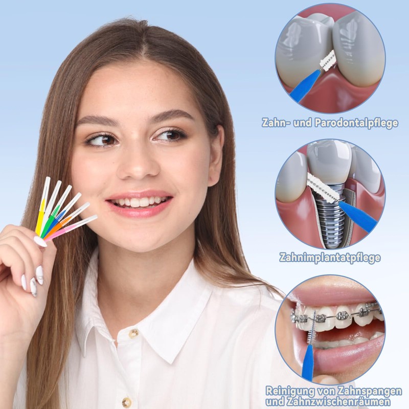 - Widely used: this interdental brush effectively removes food residue from the interdental spaces and is also suitable for cleaning braces, crowns, bridges and dentures. Whether for morning and evening care, cleaning after meals or before important occasions such as appointments and meetings, it gently nourishes teeth and gums and provides a gentle but effective mouth cleaning feeling.