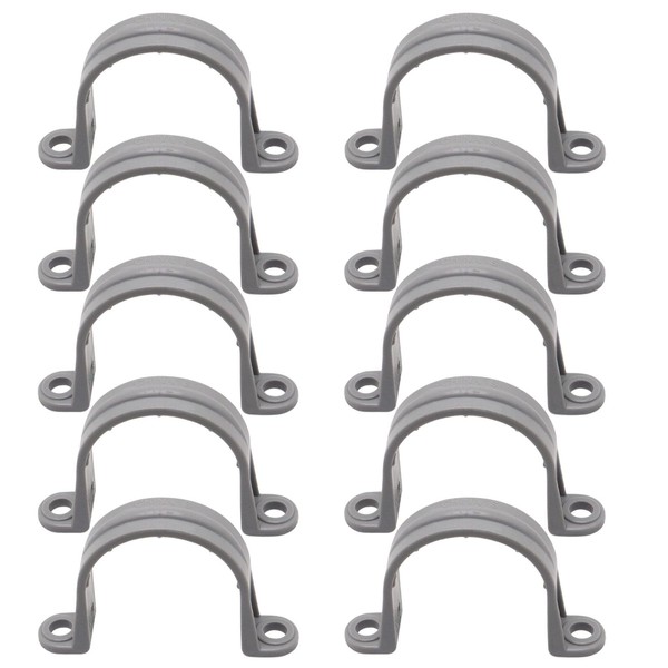 BENLIUDH 1-1/2 Inch PVC Pipe Strap, 2-Holes Conduit Pipe Clamps Plastic Pipe Supports (Grey, 10 Pcs)