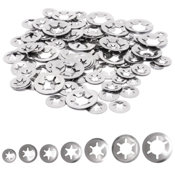 BENLIUDH Lock Washers Assortment Kit, 304 Stainless Steel Internal Tooth Star Washers Push Nuts Assortment 7 Size, 100pcs