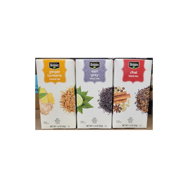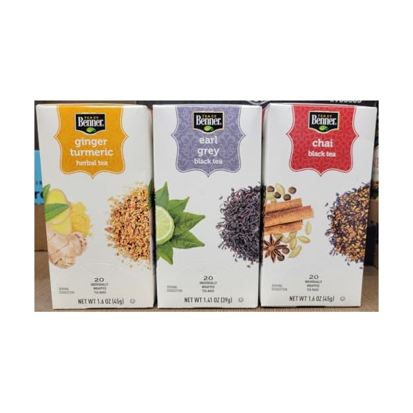 Benner Tea Co Assorted Tea Bags Ginger Turmeric, Earl Grey, Chai (Three Boxes)