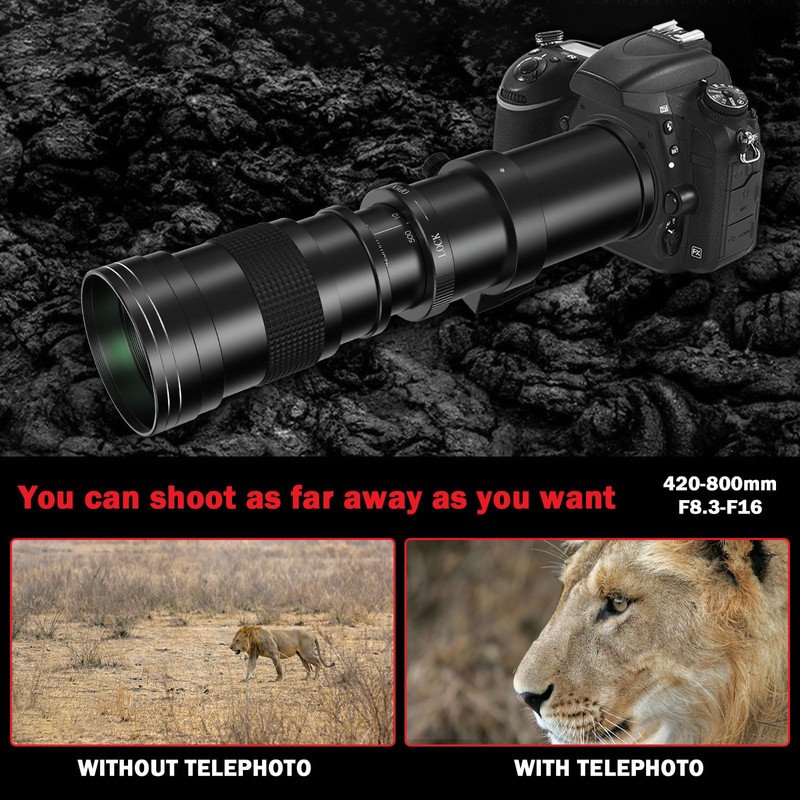 - 【420-800mm f/8.3-16 Manual Telephoto Zoom Lens】: Compatible/Replacement for Canon EOS Rebel SL3 SL2 T8i T7i T7 T6 T6s T6i 1D 5D 6D 90D 80D 77D 4000D etc