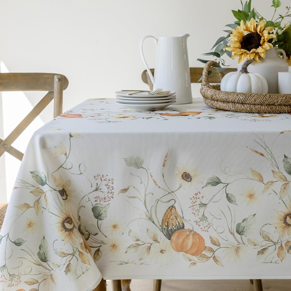 Our Autumn Bounty tablecloth is perfect for your Thanksgiving holiday or your Fall and Harvest decor. Featuring hand-painted watercolor motifs of classic fall pumpkins and sunflowers, our tablecloth is made of top-grade fibers to last for years to come.