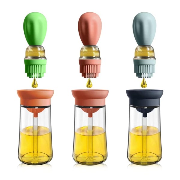 BENTFINE 3 Pcs 180ML Oil Brush Dispenser, 2 in 1 Oil Dispenser with Brush, Dropper Oil Dispenser Bottle for Kitchen, Baking, BBQ, Pastry (Blue, Red, Green)