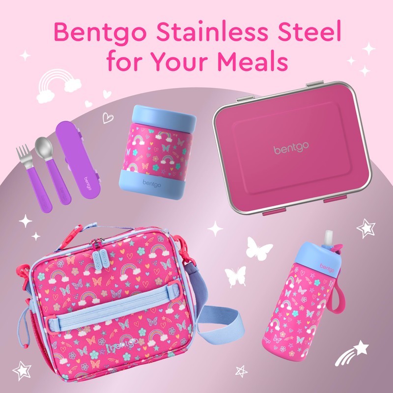 Bentgo Kids Stainless Steel Leak-Resistant Lunch Box - 3-Compartments with Bonus Silicone Container, Durable, Eco-Friendly, Dishwasher Safe, BPA-Free, Ideal for School, Ages 3+ (Fuchsia)