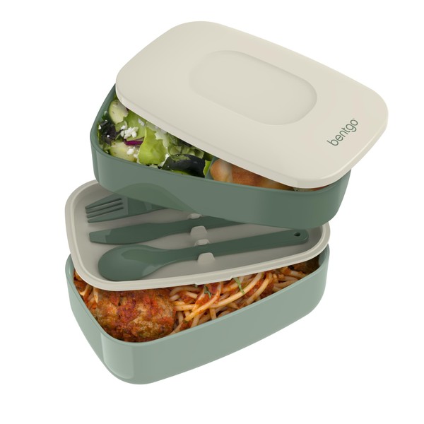 Bentgo Classic - All-in-One Stackable Bento Lunch Box Container - Modern Bento-Style Design Includes 2 Stackable Containers, Built-in Plastic Utensil Set, and Nylon Sealing Strap (Khaki Green)