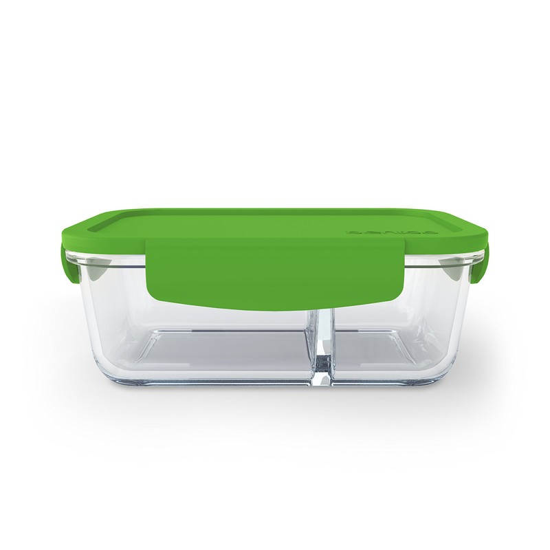 Bentgo Glass Snack (Green) – 2-Compartment Bento-Style Glass Food Storage for Snacks and Small Meals | Ideal for Meal Prep, Leftovers, and Portion Control, BPA-Free, Food-Safe Materials
