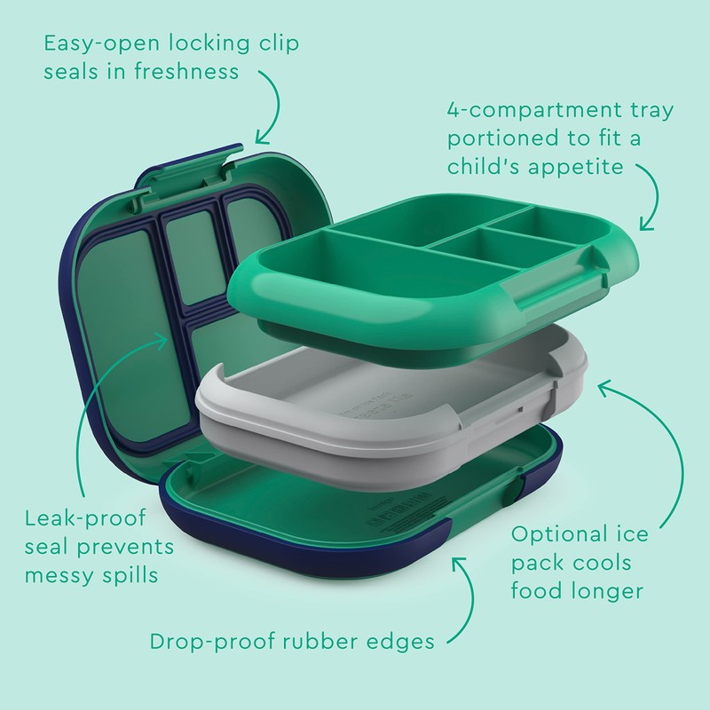 - PORTION PERFECT: The 4-compartment tray is great for picky eaters, too! It keeps food separate and allows parents to pack a variety of food: wraps, half sandwiches, fruits, veggies, and more. Plus, the durable outer shell has a rubberized edge to resist drops and cracks; making it ideal for active kids on the go!