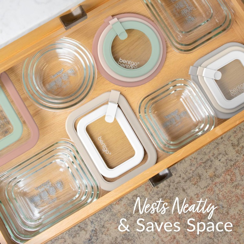 Bentgo Signature Leak-Proof Glass Food Storage - 8-Piece Set, 1-Compartment Plastic-Free Containers with Airtight Glass Lids, BPA-Free, Microwave, Freezer, Oven & Dishwasher Safe (White Stone)