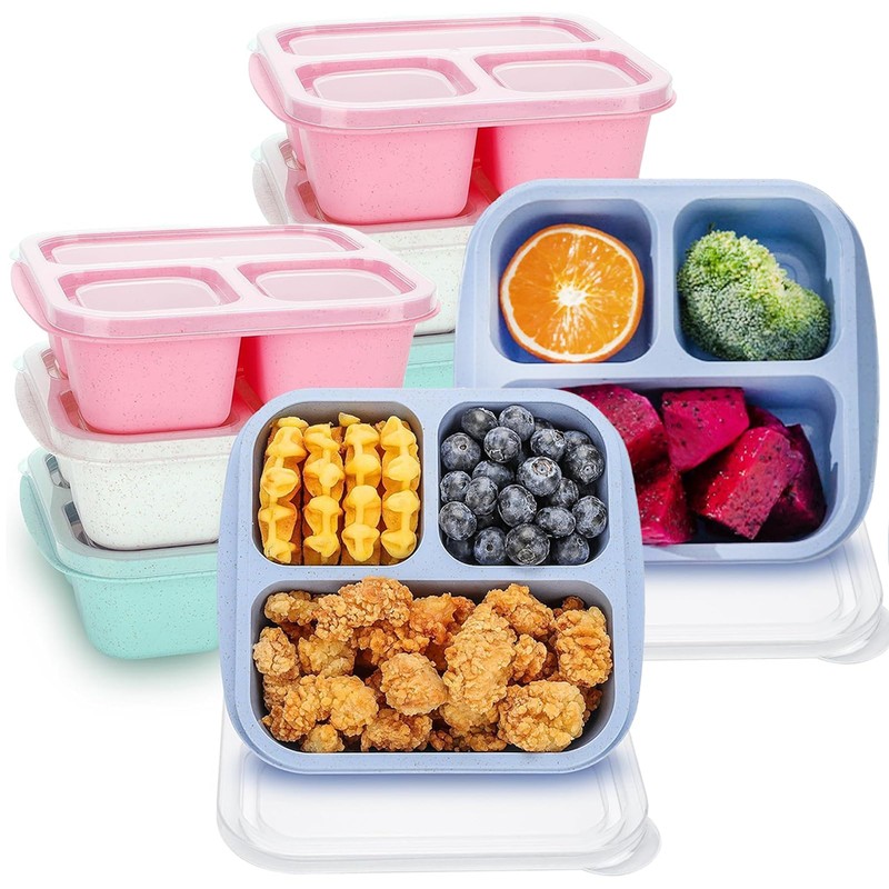 Bento Box, 8 Pack 3 Snack Containers Reusable Lunch Box, Food Storage Compart...