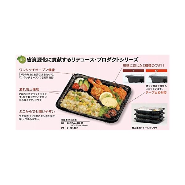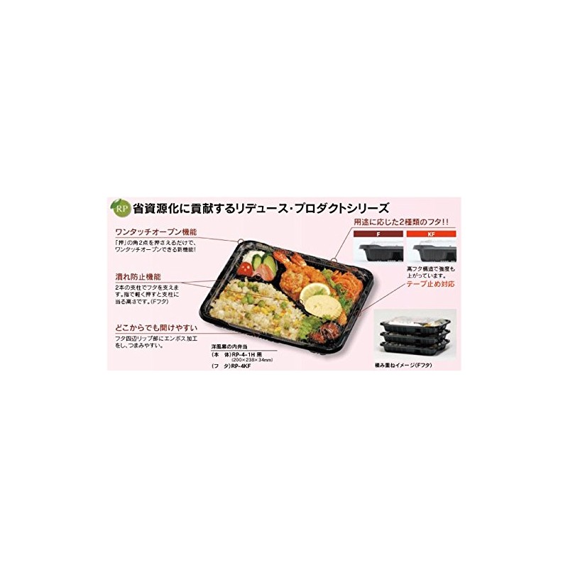 Bento Caterers Container Pleasures Series RP – 4 – 1 Black 50 Sheets 福助工業 Case + Clear Lid Set