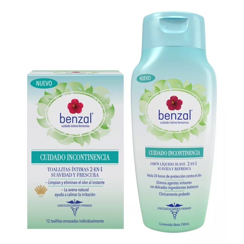 Este exclusivo jabón líquido suave, diseñado especialmente para mujeres, está hecho para garantizar que el olor sea completamente indetectable y para calmar cualquier irritación en la piel. No dejes que las pérdidas de orina te detengan, con Benzal te sentirás cómoda, segura y en control, permitiéndote disfrutar de cada momento sin preocupaciones.