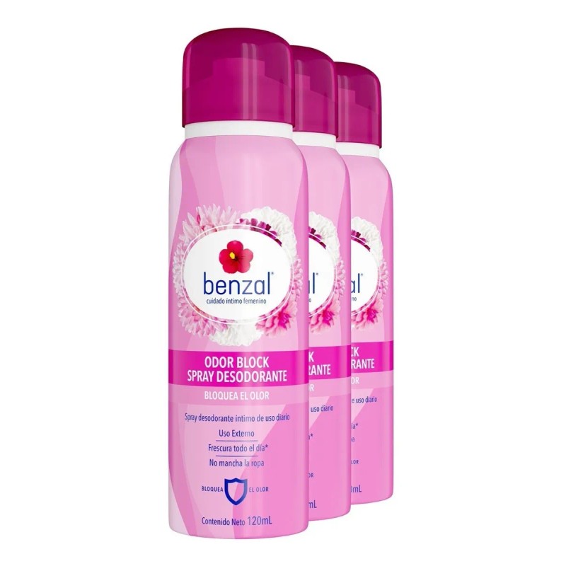 Benzal Spray Desodorante Íntimo Odor Block 3 Pack