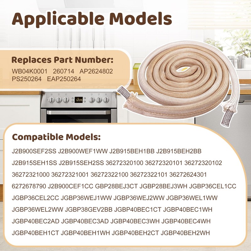 - 【Replace Part Numbers】The WB4K1 oven door gasket is compatible with GE Hotpoint Kenmore, replaces multiple part numbers, including WB04K0001, 260714, AP2624802, PS250264, EAP250264. Ensure compatibility by referring to your specific oven model.