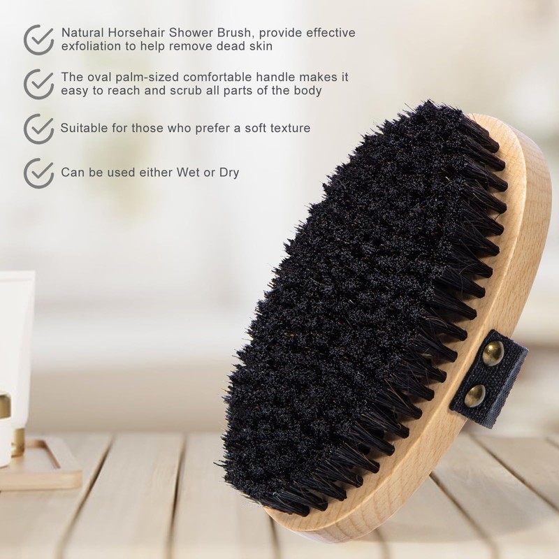 - Effective Lymphatic Drainage: This dry brushing body brush features firm, natural Horsehair designed for gentle exfoliation, improved lymphatic drainage and improved overall skin health.