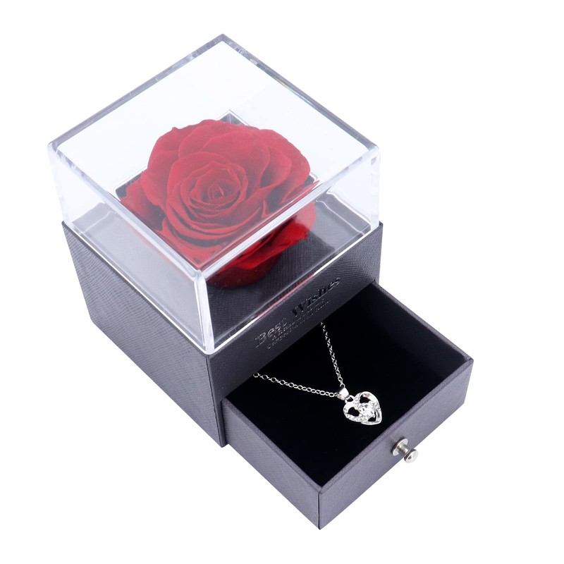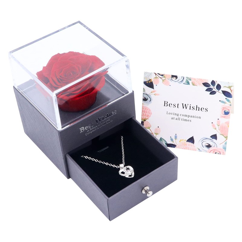 • 🌹【PERFECT GIFT】Rose symbol of love is an ideal gift for Valentine's Day, Mother's Day, Christmas, Anniversary, Wedding, Engagement and Birthday. As a gift, we have placed a necklace with a beautiful pendant in the drawer-like box, with a greeting card you can also write your thoughts on the paper.