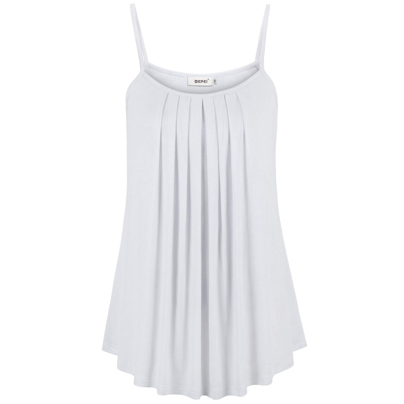 BEPEI Sleeveless Tank Tops for Women,Lightweight Comfort Camis Regular Shirt Travel Romantic Blouse Rayon Spandex Shirt White M