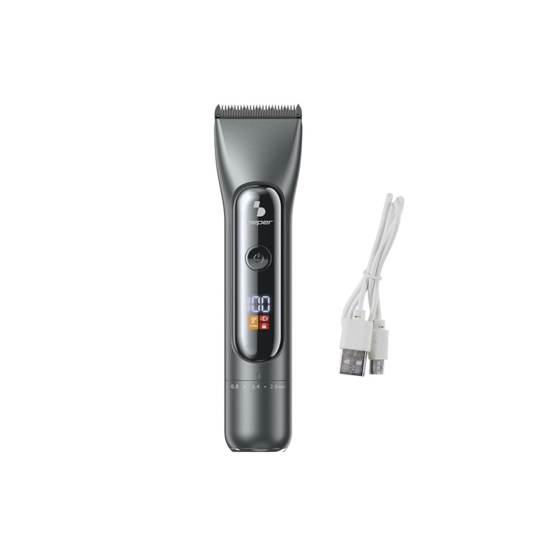 BEPER P304CAP010 Professional Men's Hair Clipper, Titanium and Ceramic Blades, LED Display, 4 Adjustable Combs, 2 Speeds, Autonomy 3 Hours, USB-C Charging, Wired