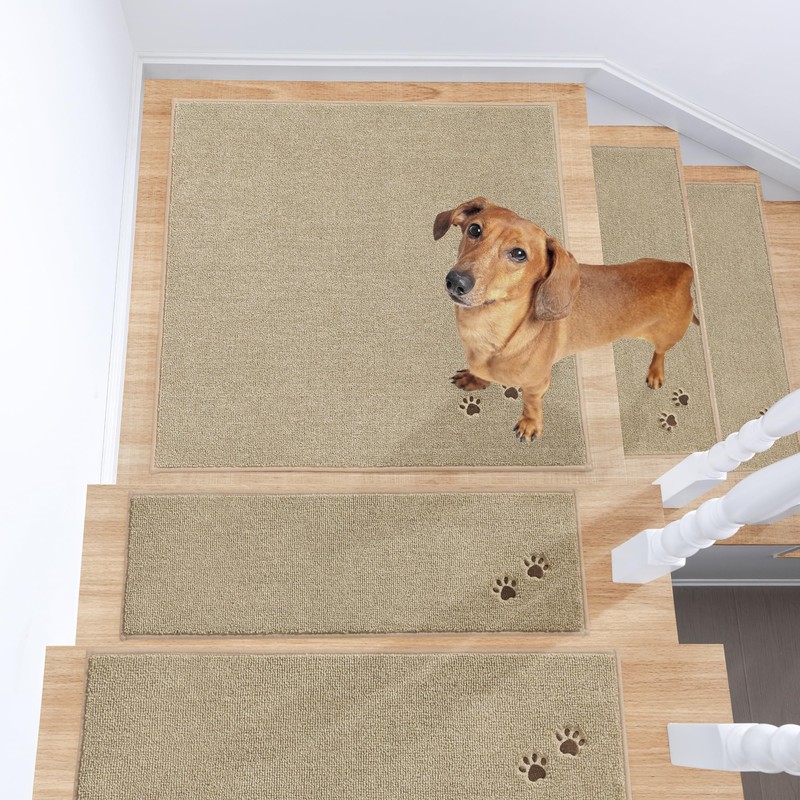 - Stylish and Wide Use: The embroidery technique makes the dog footprint pattern more novelty and solid, decorating your lovely and lively home. Our stair landing rugs for wooden steps measure 30"x30"x0.4", suitable for most kinds of indoor stairs