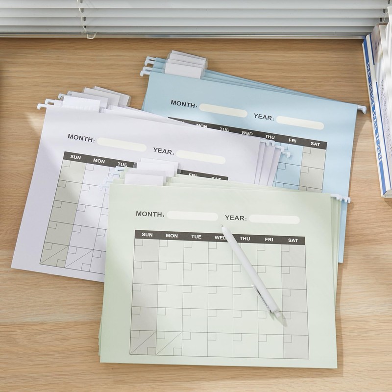 Beramon 6 Pack Hanging File Folder Letter Size Reinforced Hanging Folders with 1/5-Cut Adjustable Tabs File Folders for Filing Cabinet Organizer for Office Home, Calendar Design, Soft