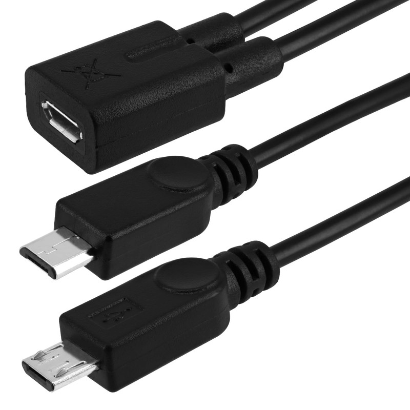 - Connectors: USB Micro-B Female on one end - Dual USB Micro-B Male on other end.