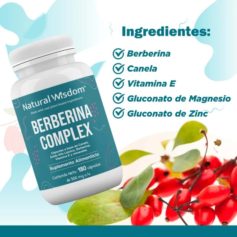 Berberina Complex | suplemento premium para mantener tus niveles de azúcar en sangre estables | adicionado con ácido alfa lipoico, vitamina e, zinc y gluconato de magnesio | 180 cápsulas
