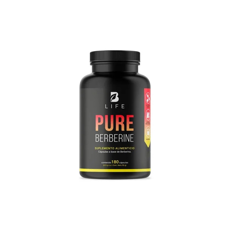 Pure Berberine B Life es una fórmula 100% natural. Cada porción ofrece una concentración máxima de 1000 mg de Berberina HCI Pura, superando otras presentaciones que solo contienen 400 mg de este valioso compuesto para tu bienestar. Contiene 180 cápsulas.