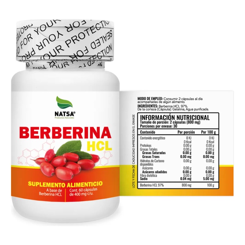 Berberina HCL 60 Cápsulas, Extracto 100% Puro, Reduce los Niveles de Azúcar, ...