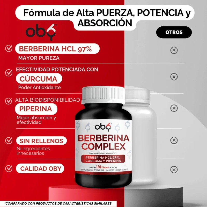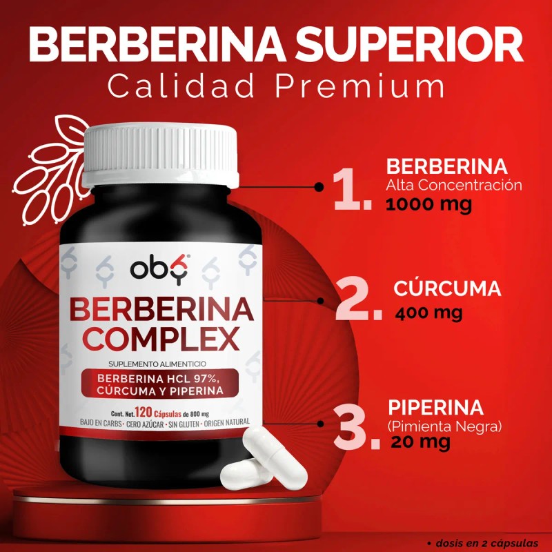 - OBY Berberina 500 mg cápsulas es un suplemento alimenticio premium, diseñado para ofrecerte una opción natural y efectiva en tu rutina diaria. Cada cápsula contiene Berberina Pura 100% Natural (de Berberis Aristata) potenciada con Piperina y Curcuma para mejorar su absorción. Con berberina capsulas, disfrutarás de una fórmula práctica y de fácil consumo. Experimenta la pureza de la berberina en cada porción. Optimiza tu bienestar con OBY.