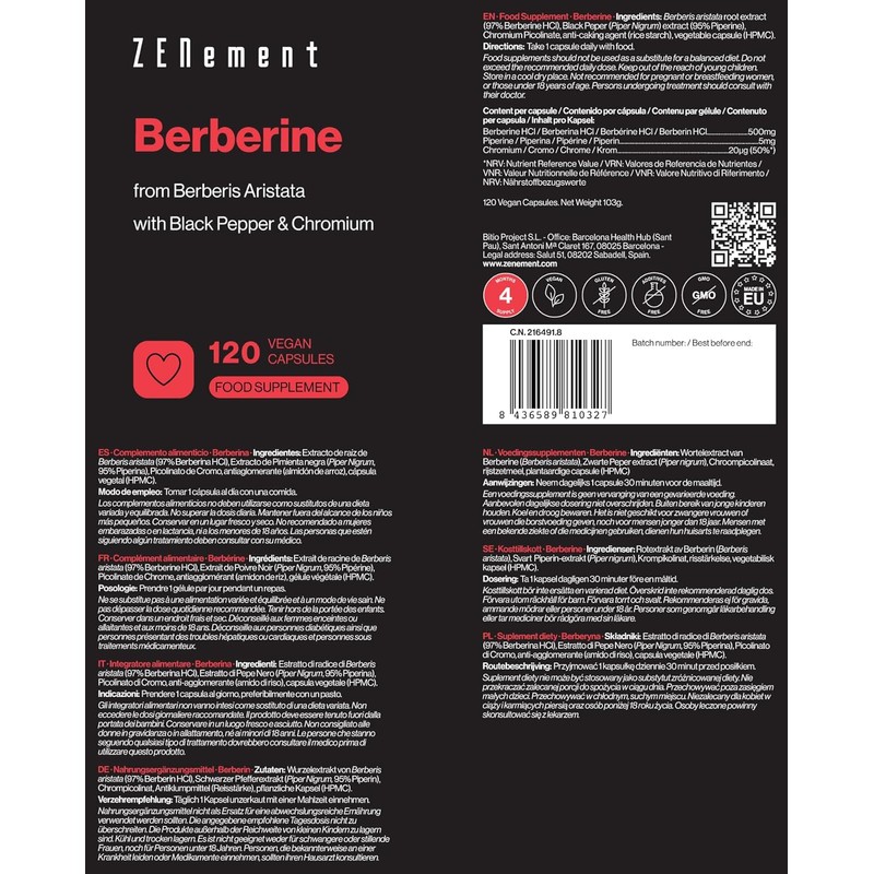 Each capsule contains 500mg of pure Berberine HCl from 100% natural Berberis Aristata extract, optimized with black pepper (95% piperine) and chromium picolinate to support metabolic balance and absorption.