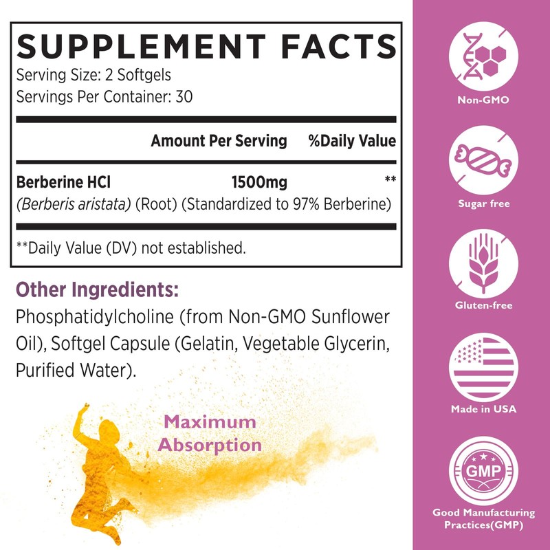 - [Cutting-Edge Absorption Technology] Our liposomal technology takes absorption to the next level of berberine compare to other berberine supplements 500mg, 1000mg, 1200mg, ensuring you get the most out of every dose, maximizing its positive impact on your health goals