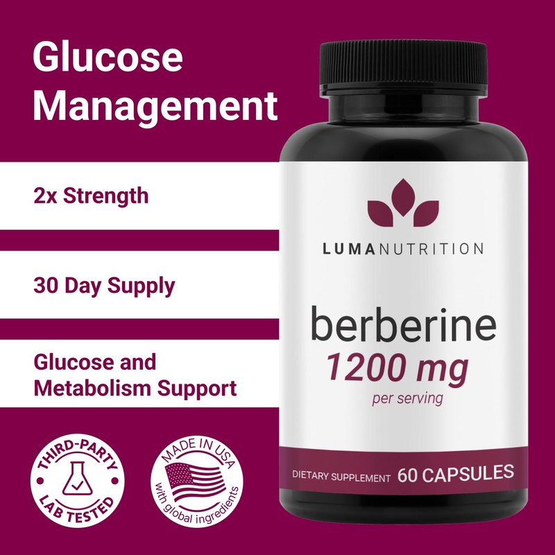 Luma Nutrition Berberine Supplement - Berberine HCL 1200mg Per Serving - Vegan, Gluten Free, Non-GMO - 60 Capsules